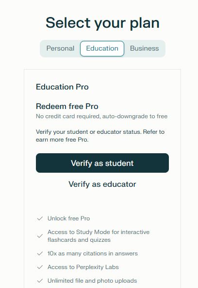 When you sign up with a .edu email address, Perplexity verifies you through a service called SheerID. Once verified, you get one month of Pro immediately.